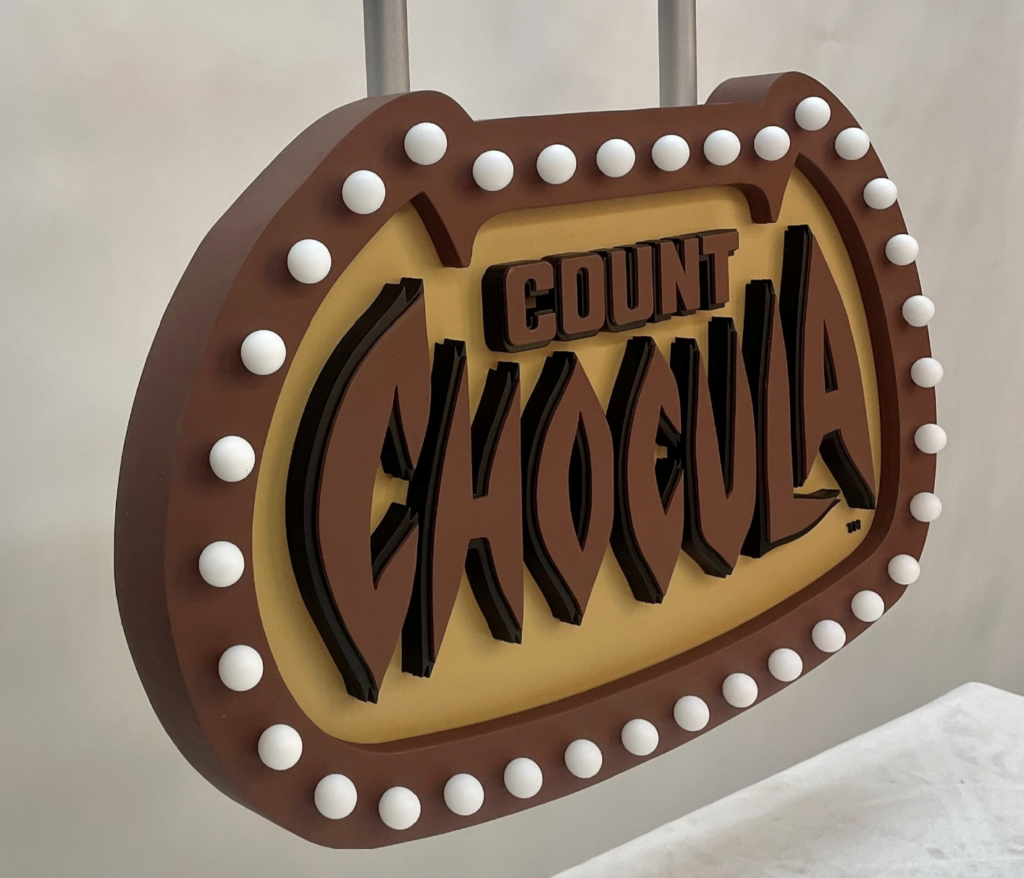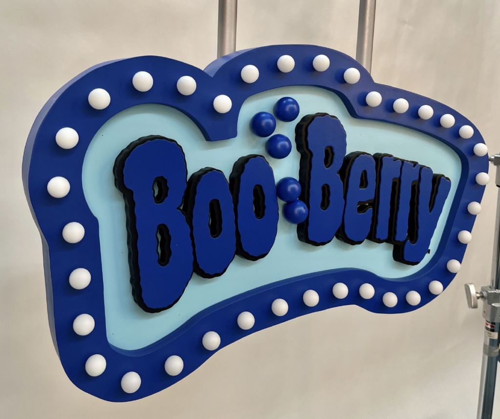I was a part of a small, three person team on a 4 day turnaround to fabricate the iconic cereal signs that accompanied the General Mills cereal monster puppets for this special 70 year anniversary campaign. I assisted with file format, laser cutting, painting, and assembling for these signs.